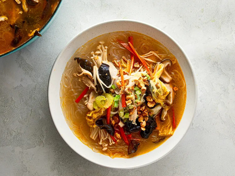 «سوپ مرغ فیلیپینی با نودل شیشه‌ای» – طعم اصیل و جشن‌گونه در هر قاشق