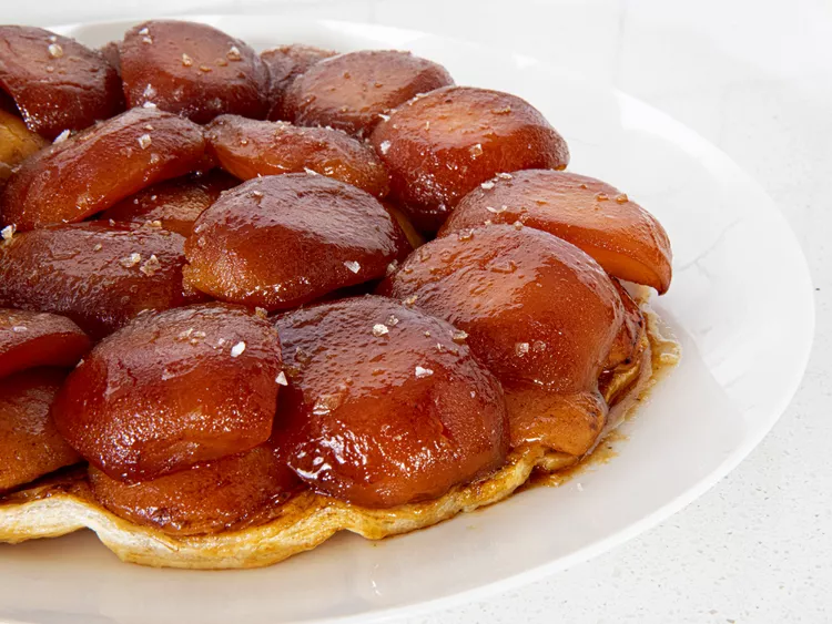 تارت تاتین یکی از دسرهای نمادین فرانسه است که با سیبهای کاراملیشده و خمیر پفکی، به شکل برعکس پخته و سپس سرو میشود. ظاهر درخشان و طعم عمیق آن حاصل تکنیکهای دقیق در تهیه کارامل و نگهداری ساختار سیبهاست که مانع از تبدیل آنها به پوره میشود.