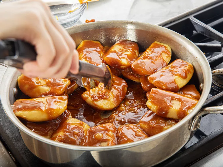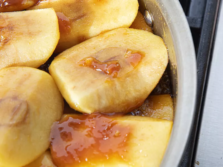 4. افزودن سیبها به کارامل